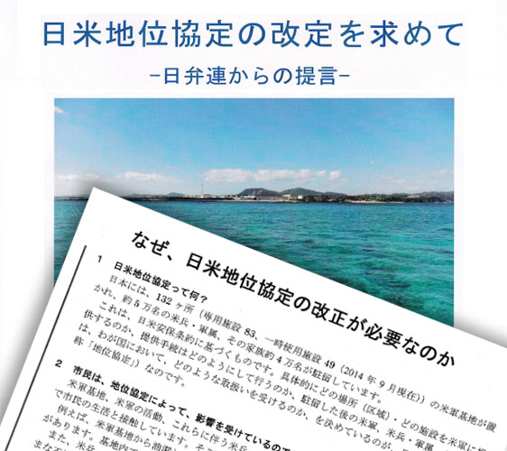 日本弁護士連合会は2014年10月、「日米地位協定の改定を求めて-日弁連からの提言-」の中で、「なぜ、日米地位協定の改正が必要なのか」を4点あげ、7つの問題を取り上げて、その改善のための提言を行っています。大変参考になりますので紹介します。全文は日弁連のウェブサイトからダウンロードできます。